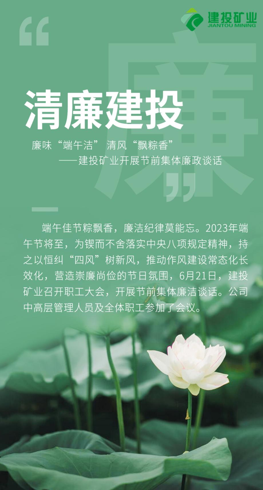 清廉建投 | 廉味“端午潔” 清風(fēng)“飄粽香”——建投礦業(yè)開展節(jié)前集體廉潔談話